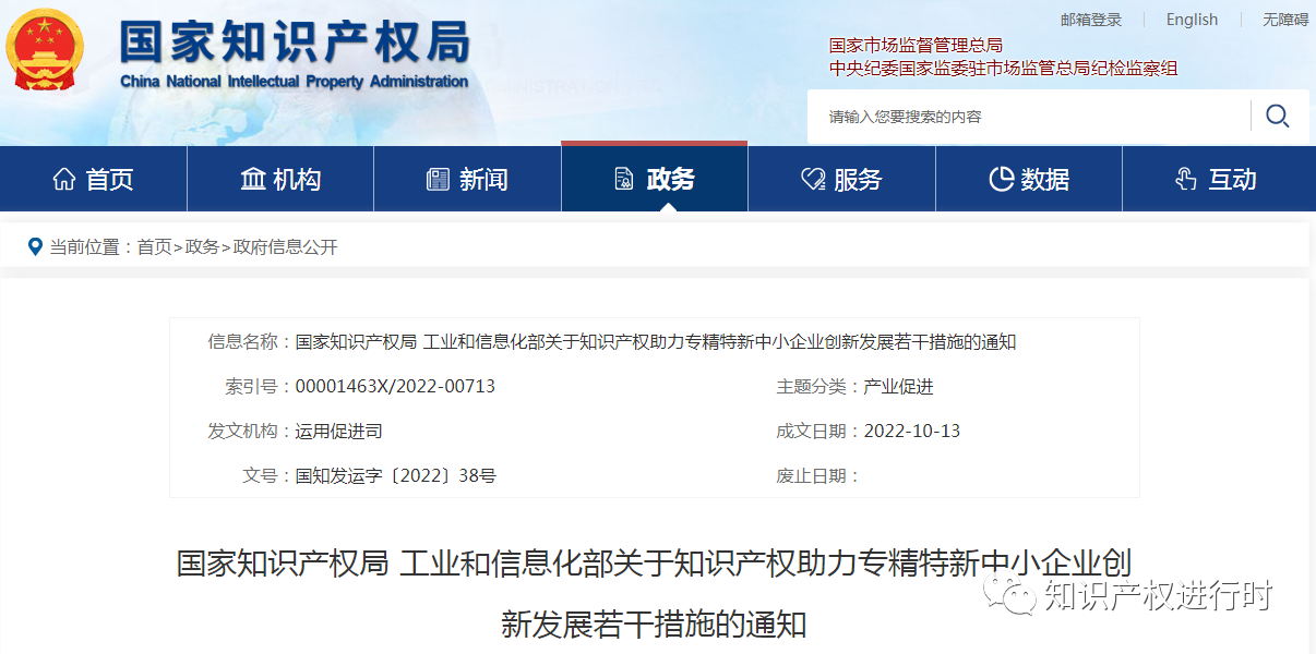 國家知識產(chǎn)權(quán)局 工業(yè)和信息化部關(guān)于知識產(chǎn)權(quán)助力專精特新中小企業(yè)創(chuàng)新發(fā)展若干措施的通知