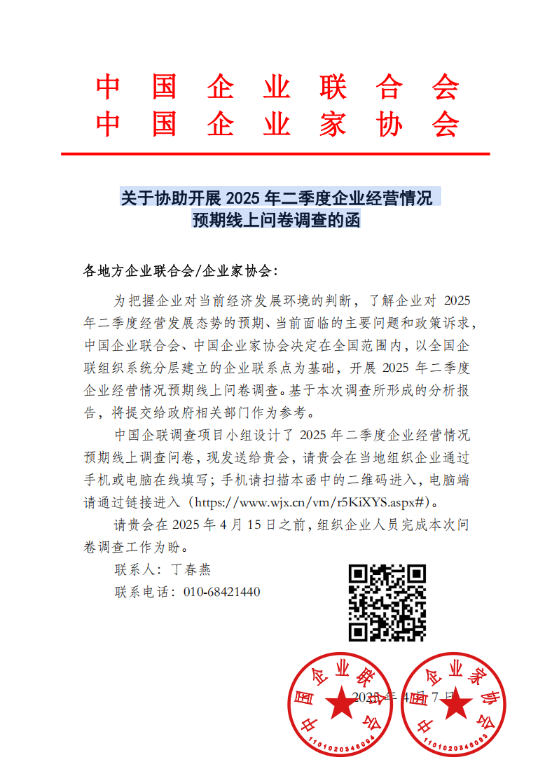 關于協(xié)助開展2025年二季度企業(yè)經營情況預期線上問卷調查的函