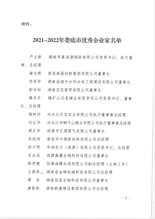 關(guān)于表彰2021-2022年婁底市優(yōu)秀企業(yè)家的決定