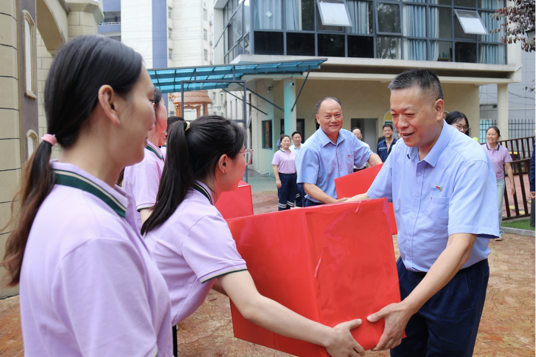 5月30 日下午,在“六一”國際兒童節(jié)來臨之際, 公司黨委副書記、紀(jì)委書記、工會主席湯偉和副總經(jīng)理謝集祥帶隊(duì)來到漣鋼二幼兒園開展“六一”慰問活動,為孩子們送去節(jié)日祝福,并向廣大教師致以誠摯問候。