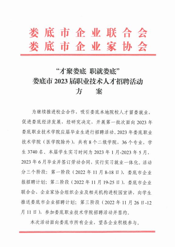 “才聚婁底 職就婁底”婁底市2023屆職業(yè)技術(shù)人才招聘活動(dòng)方案